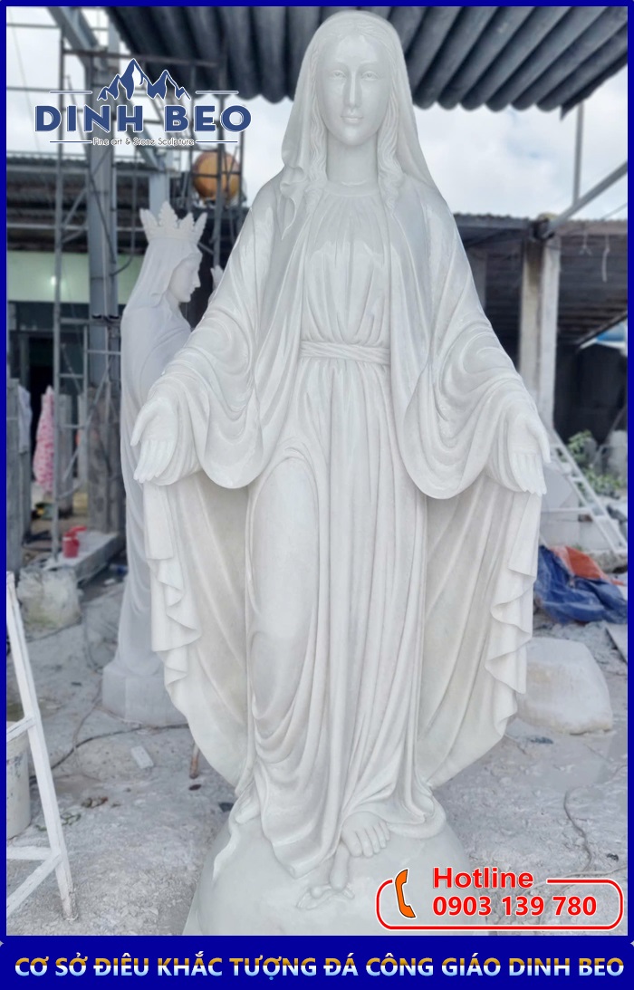 Tượng Đức Mẹ Ban Ơn là biểu tượng quen thuộc trong Kitô giáo, thể hiện tình yêu thương, sự che chở và ban phúc cho tín hữu. Mẹ Maria đứng trang nghiêm, tay dang rộng ban phúc, tượng trưng cho tình thương và ơn lành từ Thiên Chúa.