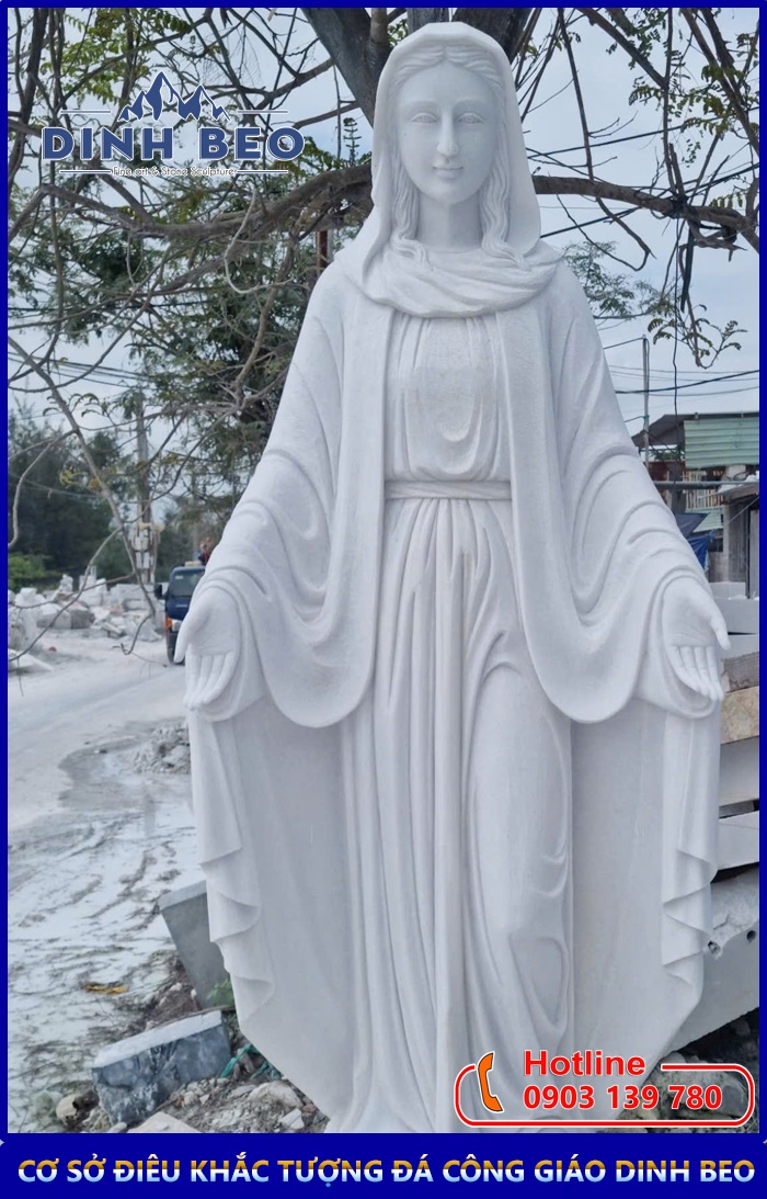 ✔ Đường nét tinh tế – áo choàng mềm mại, dáng đứng hiền hòa, gương mặt Mẹ dịu dàng đầy phúc lành.